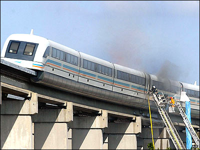 ماموران آتش نشانی در حال مهار کردن آتش در يک قطار مسافربری در شهر شانگهای چين.