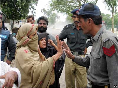 زن بلوچ پاکستانی در حال بحث با مامور پليس در جريان ناآرامی هايی در محکوميت کشته شدن نواب اکبر بوگتی از رهبران شورشی بلوچستان پاکستان.