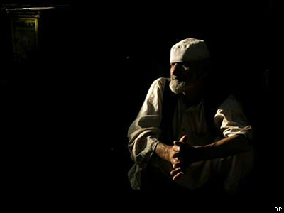 يک مغازه دار افغان در کابل در ساعات اوليه صبح، منتظر آمدن مشتری است.