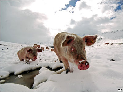 سرمای غيرمعمول و بارش برف در کوه های آلپ. اين تصويری از روستای شرونز در غرب اتريش است.