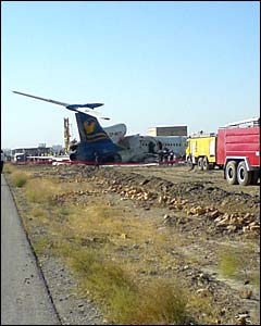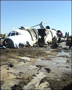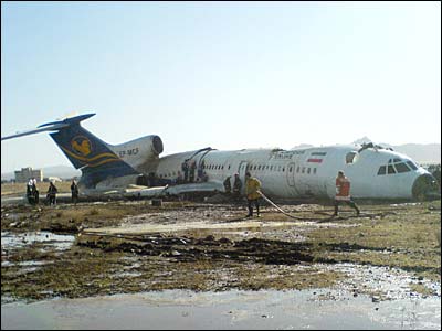 علت عمده سانحه بعد از شكستن پايه چرخ جلو ورود چرخ به كابين و انحراف به باند خاكی بود كه موجب انتشار دود و آتش سوزی در داخل هواپيما شد، برخی سرنشينان به علت خفگی جان باختند - عکس از آرش آتش زاد