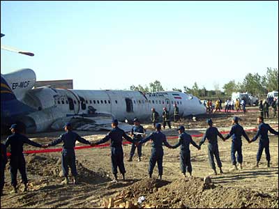 با توجه به ميزان خسارت به مخازن هواپيما، نيروی انتظامی با تشكيل ديوار انسانی اجازه عبور به هيچيک از عوامل را نمی داد. نظارت بر اجرای عمليات بر عهده فرمانده ارشد نيروی انتظامی در استان خراسان رضوی، سردار رادان، بود - عکس از آرش آتش زاد