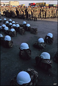 وسايل مربوط به صلحبانان فرانسوی سازمان ملل در بندر بيروت. نيروهای حافظ صلح منتظر خالی شدن وسايل نقليه و تجهيزات لازم از کشتی باری هستند.