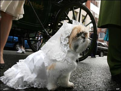 مراسم عروسی دو سگ در فروشگاه بزرگ هرودز در لندن برگزار شد. اين مراسم بخشی از برنامه های اين فروشگاه بود با عنوان "همه چيز امکانپذير است".