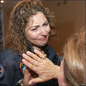 انوشه انصاری اولين زن فضا گرد جهان در حليکه با مادرش خداحافظی می کند. خانم انصاری قرار است فردا عازم فضا شود.