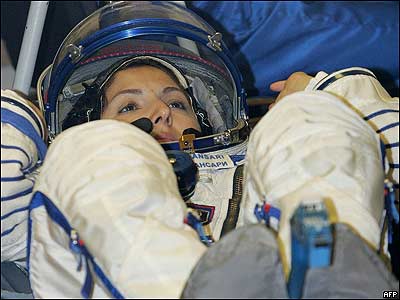 انوشه انصاری، فضاگرد آمريکايی ايرانی تبار پيش از سفر خود به ايستگاه فضايی بين المللی. او نخستين توريست فضايی زن است.