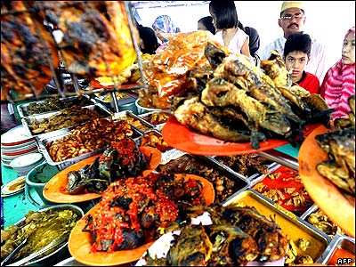 صف خريد غذا برای مراسم افطار در جاکارتا، پايتخت اندونزی. امروز مسلمانان اندونزی در نخستين روز از ماه رمضان در اين کشور روزه گرفتند.