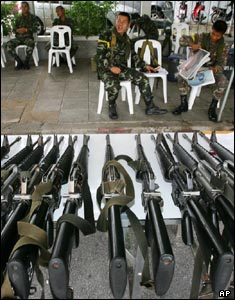 سربازان تايلندی در مقابل مقر دولت در بانکوک. در پی کودتايی که اخيرا در کشور رخ داده، هياتی ماموريت يافته تا آنچه را فساد مالی دولت قبلی خوانده شد، بررسی کند.