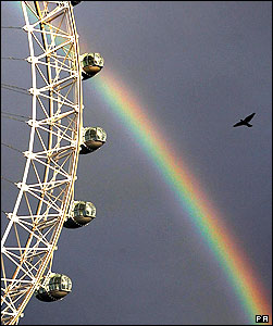 رنگين کمان بر فراز 'چشم لندن' يا London Eye که يکی از جاذبه های توريستی لندن است.