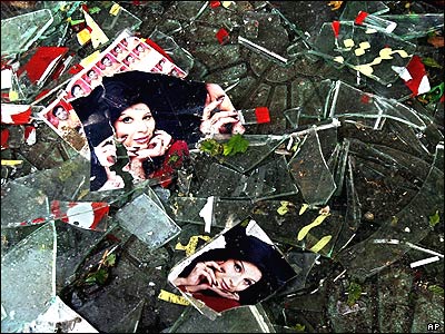 بقايای يک مرکز عکاسی در کابل که امروز در اثر يک بمب گذاری انتحاری ويران شد. دست کم دوازده نفر در اثر اين حمله که در بيرون ساختمان وزارت کشور افغانستان در کابل رخ داد، کشته شدند.