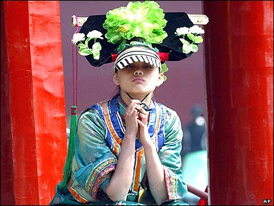 دختر چينی در ميانه تمرين نمايشی که قرار است اول اکتبر در روز ملی چين اجرا شود، استراحت می کند. تعطيلات روز ملی چين که يک هفته به طول می انجامد با نمايشها و فعاليتهايی همراه است که با هدف تجليل از هويت و فرهنگ ملی چين برگزار می شود.