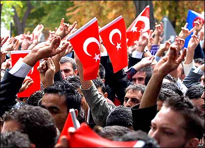 ترکهای ملی گرا در اعتراض به تصويب طرح، در آنکارا دست به تظاهرات زدند. ترکيه می گويد که در جريان درگيری هايی که با سقوط حکومت عثمانی همراه بود بسياری از ترکها هم در کنار ارمنی ها کشته شدند.