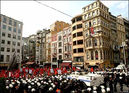 بخاطر احتمال به خشونت کشيده شدن تظاهرات، پليس ضد شورش در محوطه کنسولگری فرانسه در استانبول مستقر شده است.