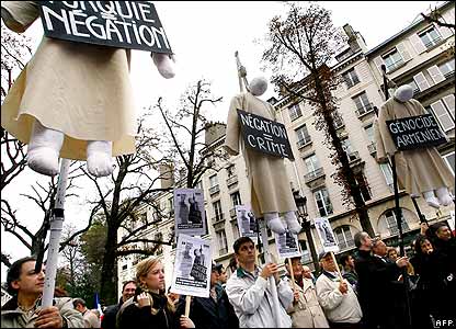 در حالی که نمايندگان مجمع ملی فرانسه طرح غيرقانونی کردن انکار "قتل عام" ارامنه را بررسی می کردند، جمعی از ارامنه ساکن فرانسه در حمايت از اين طرح دست به تظاهرات زدند.