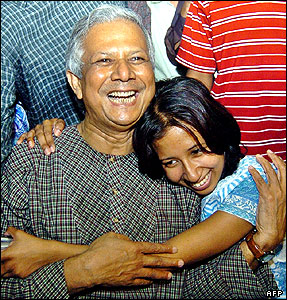 محمد يونس، اقتصاد دان بنگلادشی، برنده جايزه صلح نوبل در سال 2006 ميلادی شده است. وی موسس يک بانک است که برای افراد فقير و کم درآمد، کمک های مالی-اعتباری می دهد.