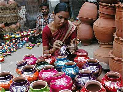 هنرمند هندی در حال آماده کردن وسايل تزئينی برای جشن ديوالی. در جشنواره "چراغها" چراغهای تزیین شده کوچک نفتی در اطراف خانه ها قرار داده می شود