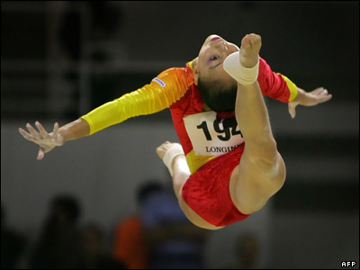 ژیمناست چینی درمسابقات جهانی قهرمانی ژیمناستیک نمایشی در دانمارک