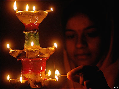 يک نوجوان هندی چراغی را در آستانه جشن ديوالی يا جشن چراغها روشن می کند. جشن ديوالی يکی از بزرگترين جشنهای آيين هندو به شمار می رود.