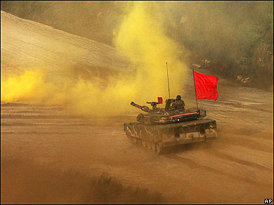 يکی از تانکهای ارتش کره جنوبی در جريان عمليات نظامی تمرينی ای که امروز در استان کيونگی اين کشور انجام شد.