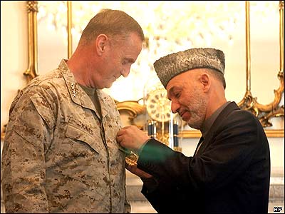حامد کرزی رييس جمهور افغانستان نشان دولتی 'امان الله خان' پادشاه سابق افغانستان را به جيمز جونز، فرمانده نيروهای ناتوی مستفر در اين کشور، اعطا کرد.