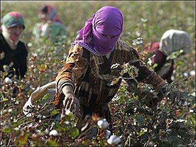 دختری تاجیک مشغول برداشت پنبه در مزرعه ای نزدیک شهر دوستی در شمال تاجیکستان. مردم تاجیکستان برای انتخاب رییس جمهورخود دوشنبه چهارم نوامبر به پای صندوقهای رای می روند.