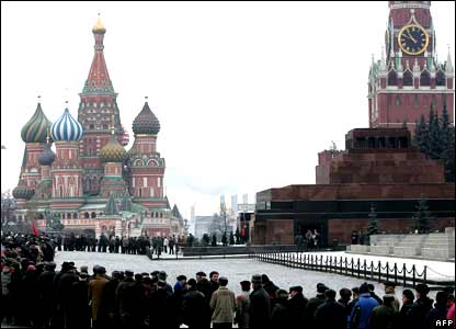هواداران حزب کمونيست روسيه در مسکو در مراسمی برای ادای احترام به لنين به مناسبت هشتاد و نهمين سالگرد انقلاب اکتبر.
