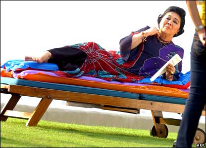 ايملدا مارکوس، همسر رييس جمهور سابق فيليپين، در مانيل. او بتازگی زينت آلاتی را طراحی و به بازارعرضه کرده است. خانم مارکوس خود به داشتن هزاران جفت کفش مشهور است.