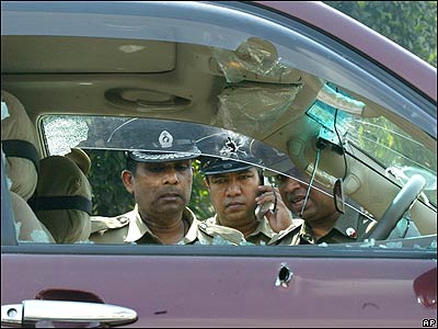 پلیس سریلانکا مشغول بازرسی از صحنه تیراندازی به خودرويی است که گفته می شود حامل یکی از اعضای وابسته به ببرهای تامیل بوده است.