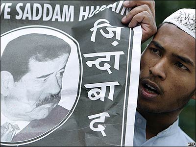 گروهی از دانشجويان در دهلی نو پايتخت هند، امروز تظاهراتی را در مخالفت با حکم اعدام صدام برگزار کردند.