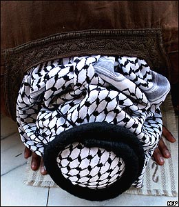 يک نمازگزار عراقی در نماز جمعه کربلا. امروز اعلام شد که از زمان حمله آمريکا به عراق تاکنون بيش از ۱۵۰ هزار نفر در اين کشور کشته شده اند.