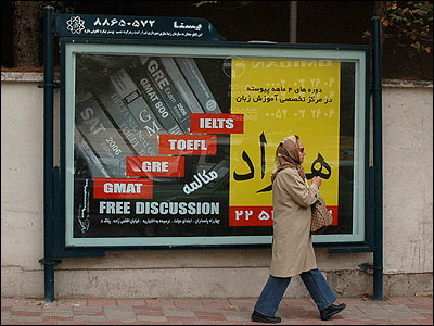 تابلوهای تبليغاتی اجناس خارجی در نقاط مختلف شهر تهران به چشم می خورند.