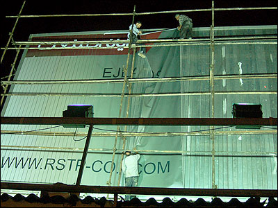 بعضی از تابلوهای شهری چند لايه اند. تابلوهايی که به طور خودکار عوض می شوند و هر بار يک تبليغ متفاوت را نشان می دهند. کارگران از شب قبل، همچنان مشغول تعويض لايه های چندگانه تابلو اين تابلو هستند.