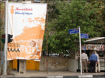 شهرداری تهران از زمان مديريت محمد باقر قاليباف، رقيب انتخاباتی رييس جمهور فعلی ايران، بخش بزرگی از تبليغات شهری را به تبليغ اقدامات شهرداری و معرفی خود به عنوان نهادی پاسخگو و فعال در زمينه خدمات رسانی اختصاص داده است.