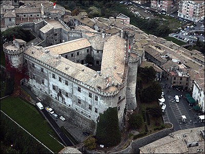 نمای هوايی قلعه اورسينی اودسکالچی در شهر براچانو محل احتمالی ازدواج تام کروز و کتی هولمز.