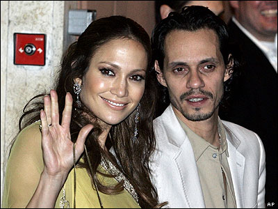 جنيفر لوپز و شوهرش مارک آنتونی رستورانی که در آن با زوج سرشناس هاليوود شام صرف کرده اند را ترک می کنند