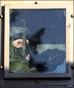 سرباز اسرائيلی در داخل يک زره پوش در جريان عملياتی نظامی در شهر قبطيه در کرانه باختری. اين عمليات ارتش اسراييل به منظور دستگيری 4 نفر از اعضای گروه تندرو جهاد اسلامی صورت گرفت.