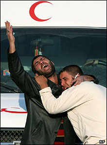 واکنش دو عراقی در پی حمله امروز صبح نيروهای تحت رهبری آمريکا به شهرک صدر در بغداد. در جريان اين حمله چهار عراقی کشته و 8 نفر مجروح شدند.
