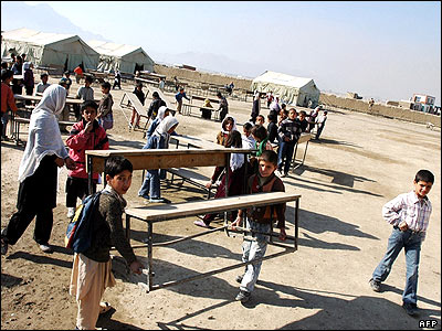 دانش آموزان افغان در يک مدرسه سيار در کابل