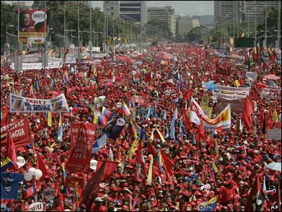 گردهمایی تبلیغاتی بزرگی در کاراکاس، پایتخت ونزوئلا در حمایت از هوگو چاوز، رییس جمهوری این کشور برپا شد و صدها هزار نفر از مردم ونزوئلا در این تجمع شرکت کردند.