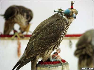 یک شاهین شکاری که به قیمتی بیش از پنج هزار دلار در دوحه قطر به فروش گذاشته شده است. |