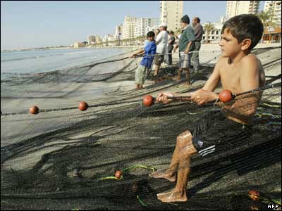 پسری لبنانی مشغول ماهیگری به همراه پدر و برادران خود در بندر صور در جنوب لبنان. قرار است بازرسان سازمان ملل متحد از امروز تحقیقات پیرامون ترور پی یر جمیل، وزیر صنایع این کشور را آغاز کنند.