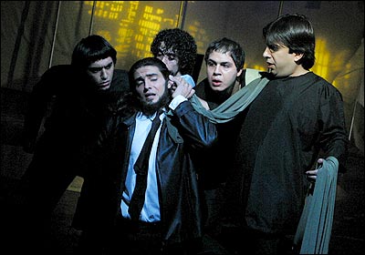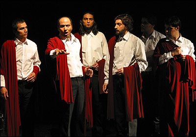 نمايش 'جوليوس سزار' نوشته ويليام شکسپير به کارگردانی مسعود دلخواه در تالار مولوی دانشگاه تهران تا آخر هفته سوم آذر ماه ۱۳۸۵ بر روی صحنه است. - گروه سناتوره به رهبری بروتوس