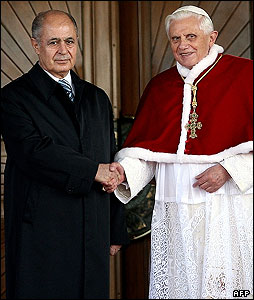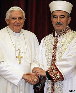 ديدار با علی بارداق اغلو، بالاترين مقام مذهبی دولتی ترکيه. پاپ بنديکت شانزدهم قرار است با رهبر کليسای ارتدوکس در استانبول نيز ديدار کند.