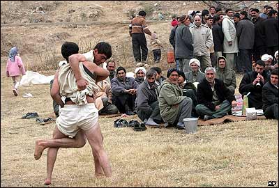 کشتی جوانان بخشی از مراسم سنتی عروسی مردم اين شهر است. |