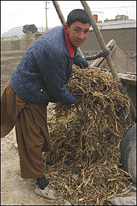 ما از کاهی که بدست می آوريم هم برای سوخت و هم برای غذای دامهايمان استفاده می کنيم.