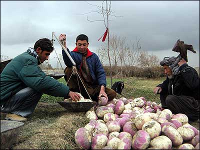 اين شلغم ها رو که می بينيد امسال بدست آورديم و هر هفت کيلو شلغم را 40 افغانی (نزديک به يک دلار) می فروشيم.