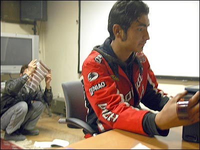 اينجا من دارم به فيلم يکی از هم کلاسی هام نگاه می کنم ببينم چی کار کرده؟!! سه دختر هم با ما در کورس عکاسی درس می خونند.