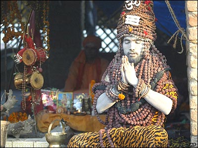 يک مرتاض هندی در حال نيايش در نزديکی رودخانه گنگ. |