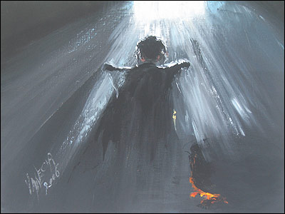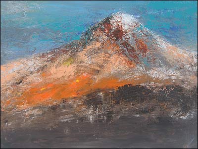 در انتظار آرش - "آنگاه دماوند را نقاشی کردم که بیصبرانه در انتظار آرش بود. او گویی اگر آرش نمی آمد آتشفشان میکرد."