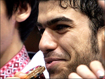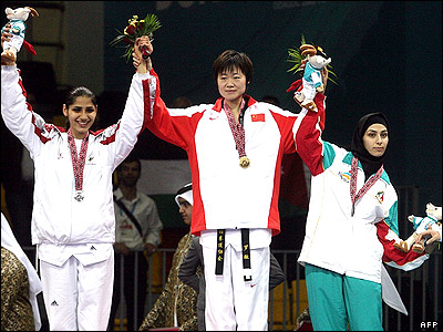 مهروز ساعی برنده مدال برونزرقابت های تکواندو در رقابت بازیهای آسیایی دوحه قطر در کنار برندگان دیگر وزن 72 کیلوگرم از کشورهای چین و اردن